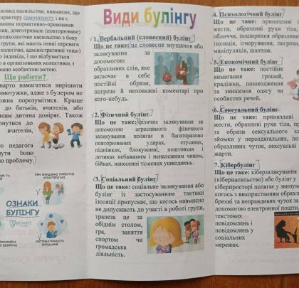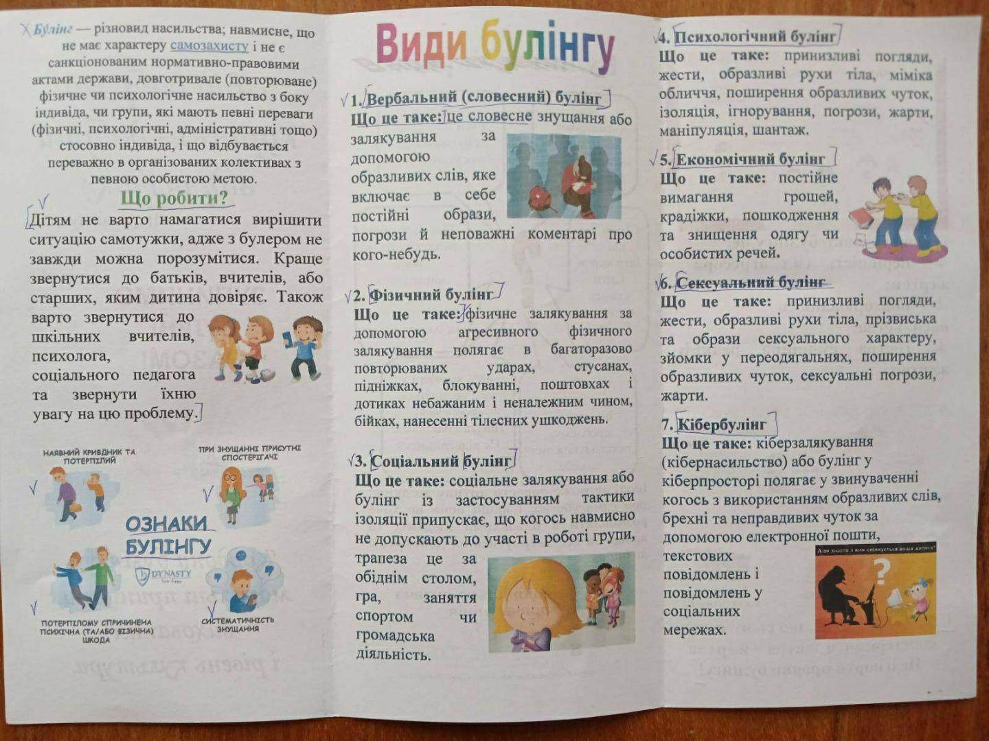 Метою заходів було ознайомити учнів з поняттям «булінг» та його видами, закріпити навички надання й отримання допомоги жертвам насилля.