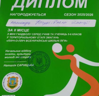 ІІ місце- з гандболу серед юнаків 7-8 класів;